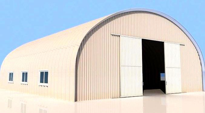 K-Span buildings are continuous arched steel panel buildings that are fabricated by means of a trailer mounted roll forming system that can be transported to the construction work site. The individual fabricated panels are seamed together by means of an electrically driven hand operated seaming machine that connects the panels together into panel bays of 3 to 5 foot sections. These sectional bays are then raised and placed onto the foundation and joined to adjacent building sections and seamed together. Buildings as small as 12 feet wide and as large as 120 feet wide can be designed on site and constructed. K-Span buildings can be used to satisfy almost any building function from housing, warehousing and storage facilities, maintenance buildings, aircraft hangars, agricultural and livestock buildings, commercial facilities, recreational structures or any other use that may be required. The term K-Span is the patented name for the specific type of buildings made from either the Automatic Building Machine (ABM) or Ultimate Building Machine (UBM) systems.
